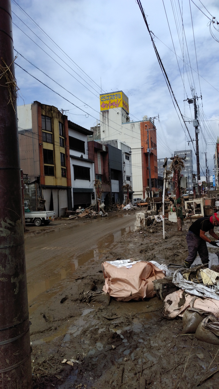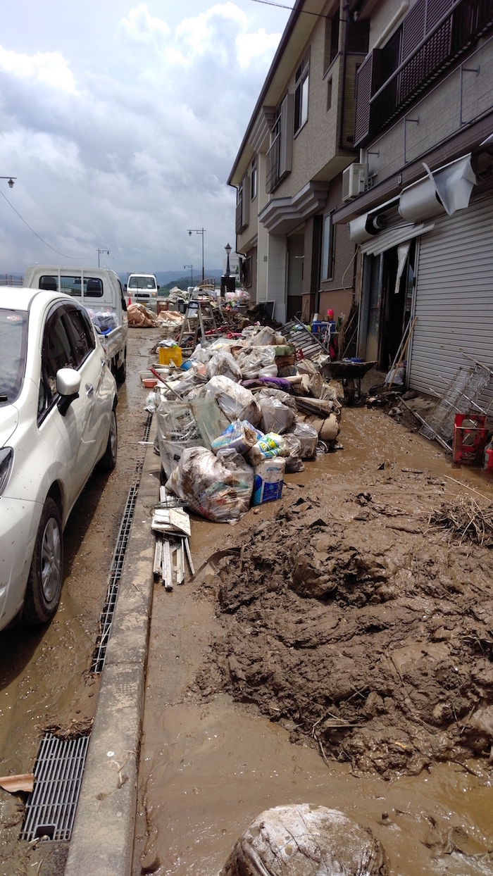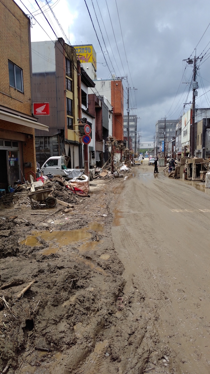4日午後6時ごろ、水が引いたのを見計らい、岡本さんはぬかるみに足をとられながら商店街を歩いた。甚大な被害にがくぜんとし、「店主のみなさんは立ち直れるだろうか」と不安を覚えた。