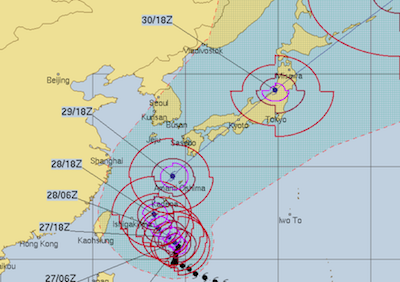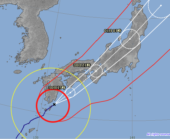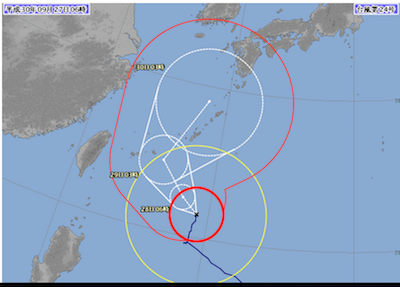 で、今回言いたいのは、台風予報の黄色い「強風域」いらんのでは?