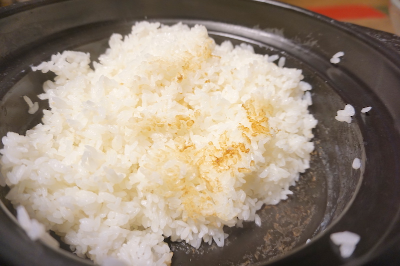 ほんの少し、底が焦げて、きつね色になった炊きあがりを目指します。