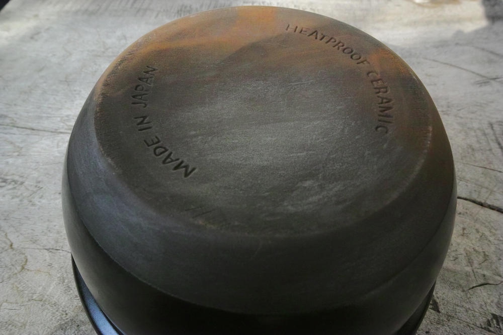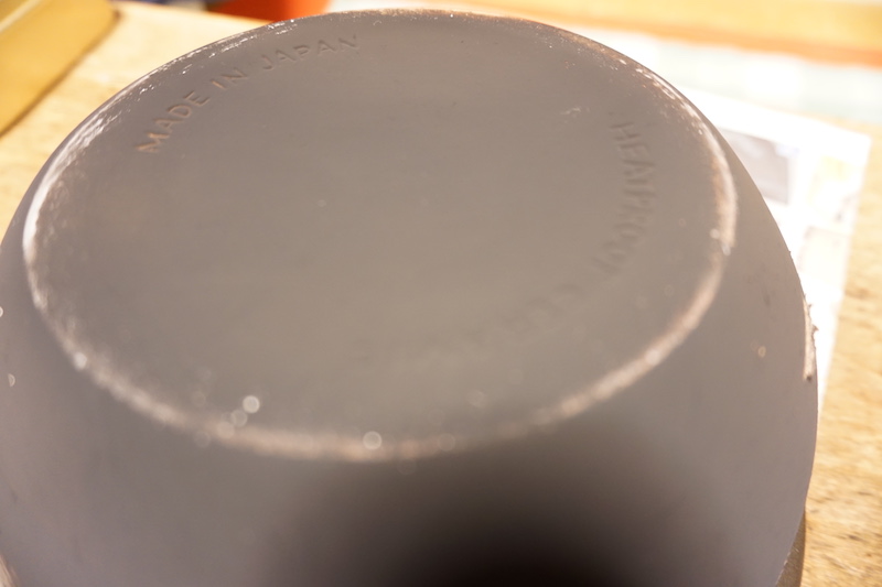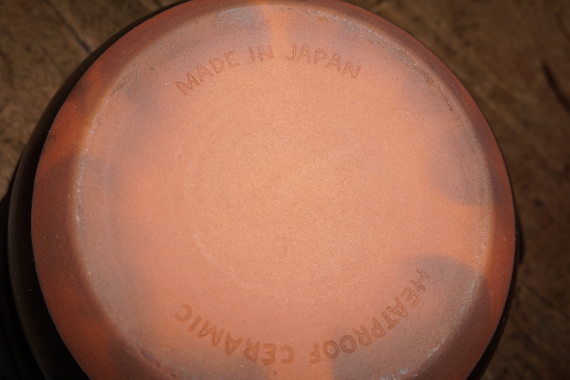 なんと!今どき珍しくも、「MADE IN JAPAN」と刻印してあります。そして、「HEATPROOF CERAMIC」なるほど、耐熱陶器と。